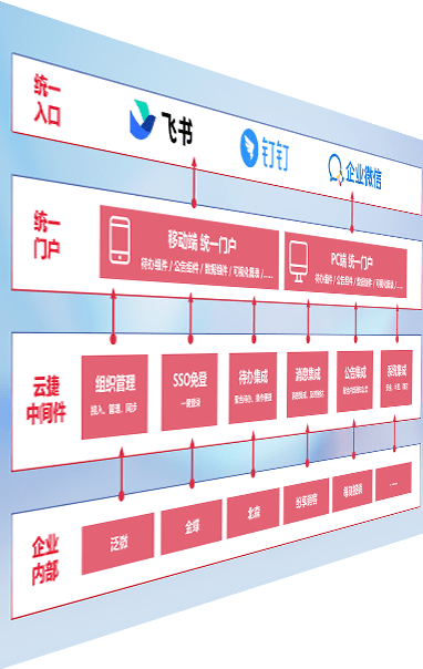 对协作平台提供支持服务,,,支持企业应用与协作平台对接,,,,包含组织同步、、消息集成、、、、待办集成等。。支持目前主流的协作平台:钉钉、、企微和飞书。。